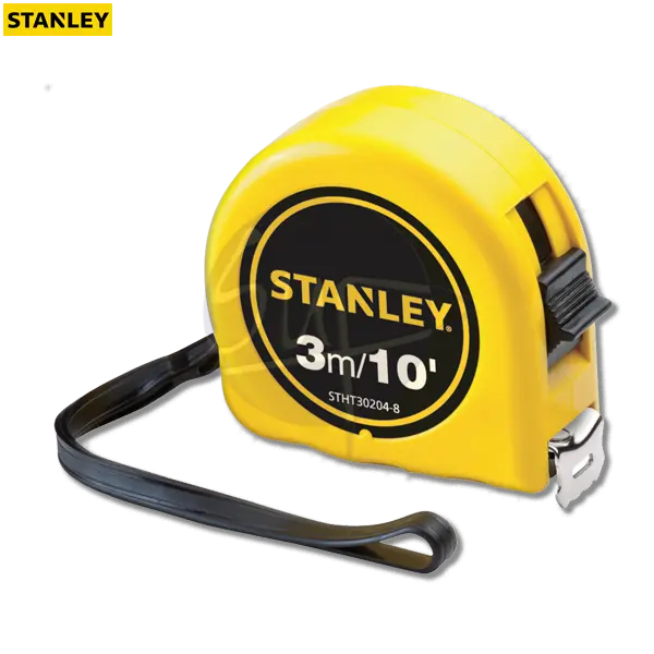 The STANLEY STHT30204 is a high-quality measuring tape designed for precision and durability. With a 3-meter length, it provides accurate measurements for a wide range of applications, from home improvement projects to professional construction work. The durable blade ensures longevity, while the compact and ergonomic design offers a comfortable grip for easy handling. Featuring a smooth retraction mechanism and clear markings, this measuring tape is a reliable tool for both DIY enthusiasts and professionals..